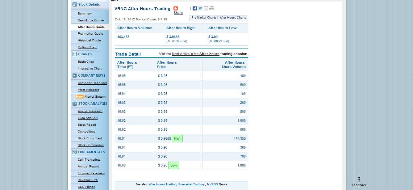 $VRNG MASSIVE Share volume after hours! $GOOG